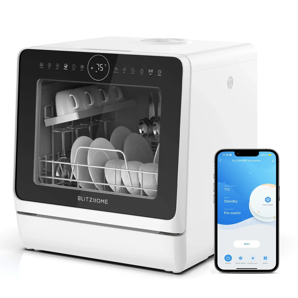 Kompakt, intelligens asztali mosogatógép érintésvezérléssel és mobilalkalmazással történő vezérléssel. 8 különböző programot kínál, köztük az energiatakarékos ECO és a speciális gyümölcs/üveg és öntisztító üzemmódokat. Elférnek benne 3-4 személy edényei, két zuhanyzósíkban mosogat, és ciklusonként mindössze 5 liter vizet fogyaszt. Erőteljes 950 W-os motor, egyszerű csatlakoztatás EU-s dugóval.