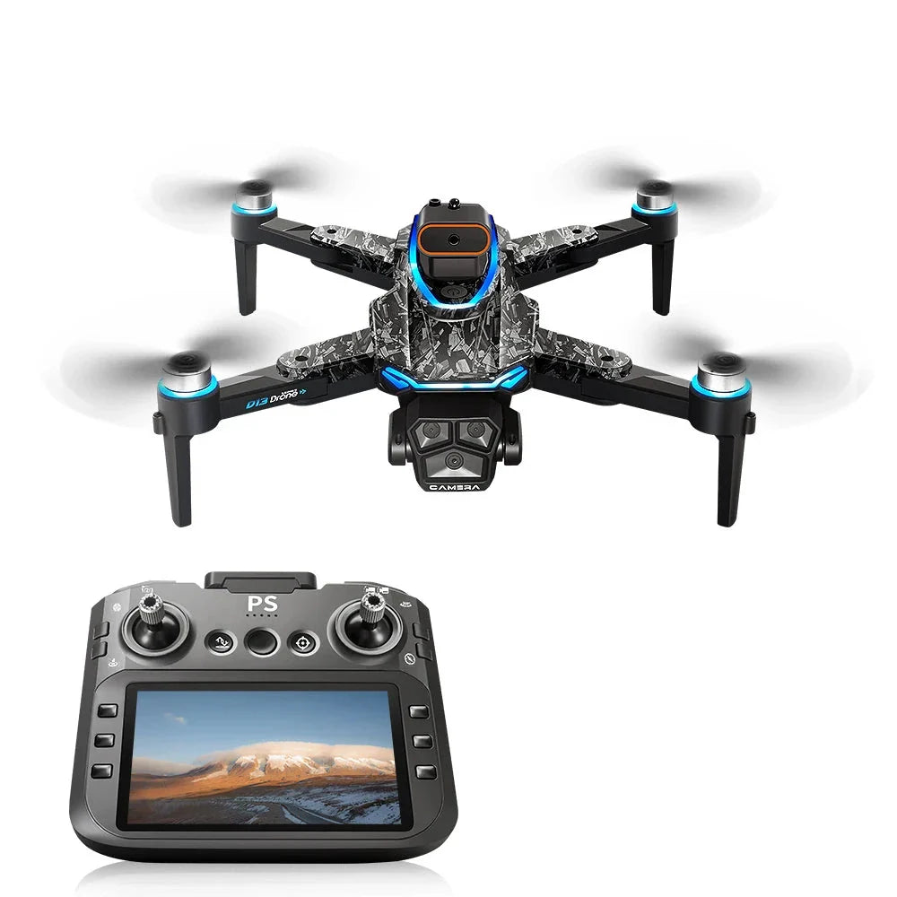 Összecsukható drón 8K kamerával, 5G WiFi videóátvitellel és HD kijelzővel a távirányítón (4,5"). Kefe nélküli motorral, optikai pozicionálással, ötoldalú akadályvédelemmel és automatikus helyzetbeállítással rendelkezik a nagyon stabil repülés érdekében. A vezérlés és a telemetria mobiltelefon nélkül is könnyen elvégezhető közvetlenül a saját akkumulátorral rendelkező multifunkciós vezérlőn keresztül.